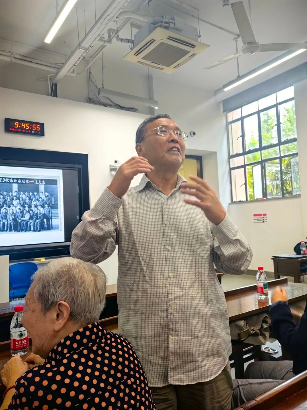 18日上午,在同学们当年上课学习的南楼201阶梯教室,毕业四十周年再聚首座谈会正式开始,会议由徐世法同学主持,84届道路专业师兄、原同济大学党委书记、现校务委员会主任方守恩教授向同学们回顾了同济大学建校历史和变迁,介绍了学校和学科建设及发展情况,着重介绍了学校未来的重点发展和努力方向。同济的高速发展和傲人成就,让同学们与有荣焉,大家都以有这样的母校而自豪。原班级指导员93岁高龄的张南鹭老师、原班主任张成龙老师、以及路面工程任课老师程家驹专程到现场与同学们见面,并鼓励同学们继续努力再造辉煌。随后现场每位同学依次上台,介绍自己四十年的工作和心得,大多数同学们都在不同工作岗位取得了不俗的成就,特别是姜昌山同学还获得了国家级设计大师称号。同学们都表示,这些成就的取得都是与母校的优质教育和老师们的谆谆教诲分不开的。