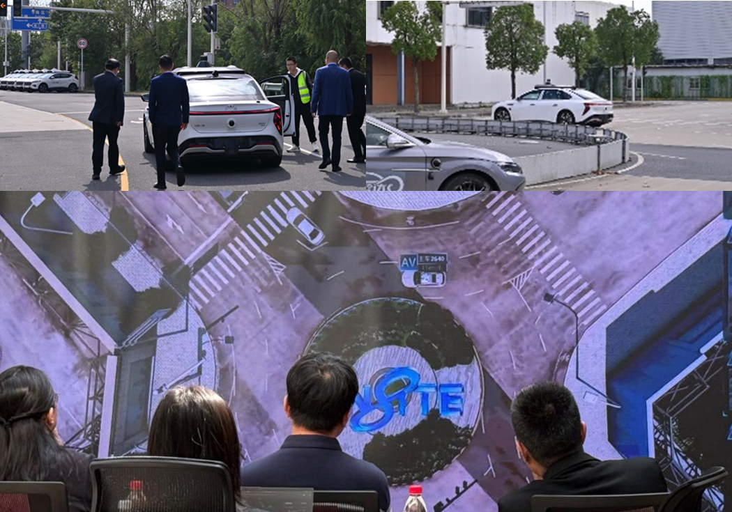 专家组通过指挥中心观摩与实车体验同步参与自主式交通系统虚实融合联动测试