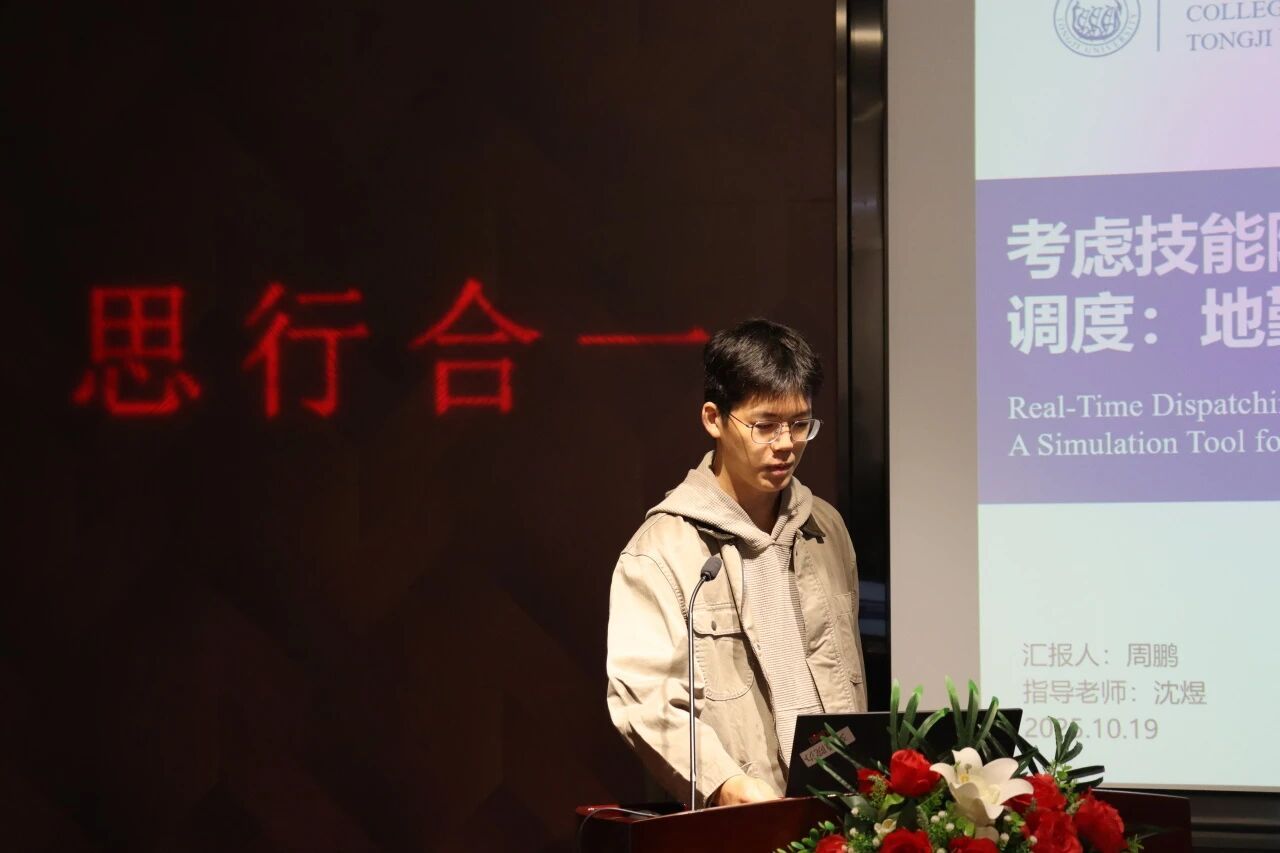 同济大学在读博士研究生周鹏聚焦机场地面运营效率问题,围绕“考虑技能约束的机场停机坪员工实时调度”展开汇报。