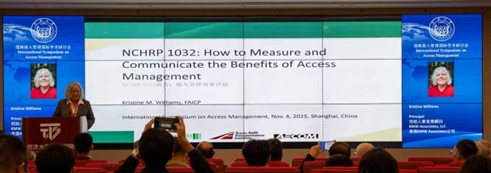 11月4日上午,中外学者针对道路接入管理的基础理论与国家政策导向进行研讨。美国 KMW Associates 公司创始人兼首席顾问Kristine M. Williams、美国 Kittelson & Associates 公司高级工程师Kristine Connolly、美国 HDR 公司交通工程师王邦宇博士分享了美国接入管理相关规范与实际应用情况。交通运输部公路科学研究院赵娜乐研究员、浙江省公安厅交通管理总队程金良警官介绍了中国在道路接入管理实践行动的宝贵经验及相关行业标准。