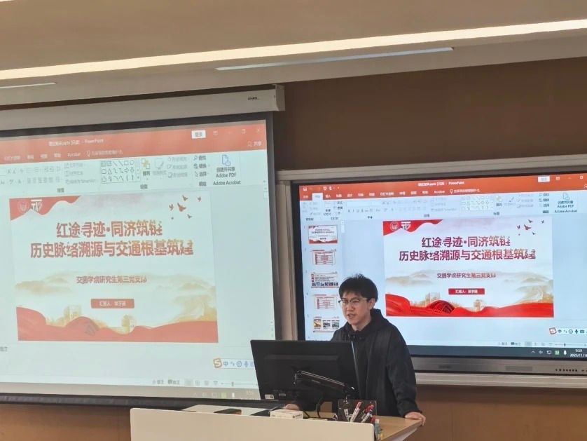 随后,交通学院研究生第三党支部的成员们分别围绕交通历史溯源、交通发展现状剖析与交通领域未来蓝图三个方面,为同学们依次呈现了三场既系统又深入的生动党课。