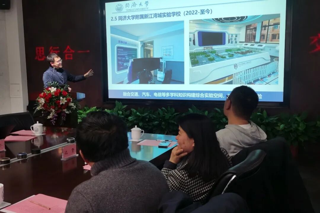 针对澄衷中学的建设需求,同济大学交通学院积极回应并输出专业支持。学院大中贯通教学团队核心成员张力楠老师结合以往与多所中学共建科创实验室及开设工程科学素养培育课程的实践经验,提出并阐述了“以学生为中心,以素养为导向,构建贯通中学与大学的创新实践桥梁”这一建设理念。他建议,实验室规划应立足未来交通发展趋势,以“展望2050年城市交通”的宏大愿景为指引,构建一个面向自主智能无人交通系统的前沿认知与体验空间,打造集智能车、无人机、轨道交通于一体的“人-车-路-环境”全要素协同AI实训平台。
