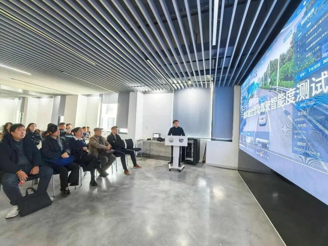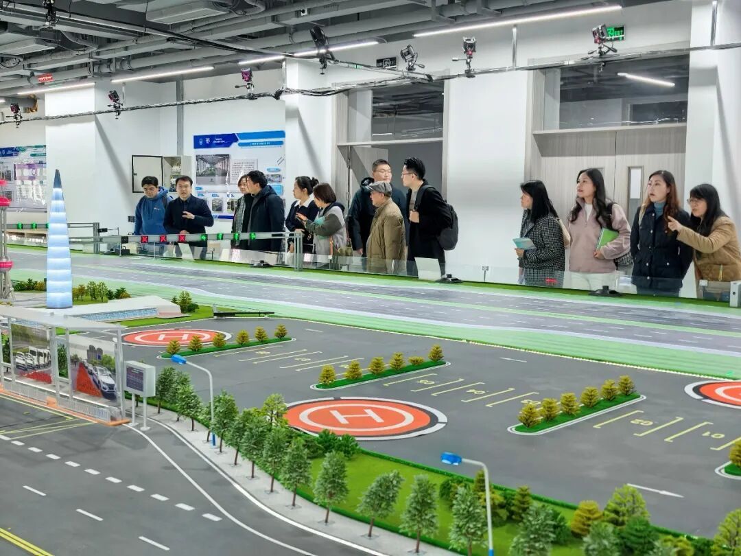 会前,澄衷中学一行在洪玲教授陪同下,实地考察了交通学院智能网联三相映射综合交通实验平台、多制式轨道交通仿真实验平台、道路基础设施设计与安全运行实训平台、轨道交通综合试验中心、八自由度驾驶模拟实验系统、铺面加速加载实验系统等。从智能网联交通到路面材料测试,一系列前沿设备与沉浸式场景化的科研体验,给考察团留下了深刻印象。