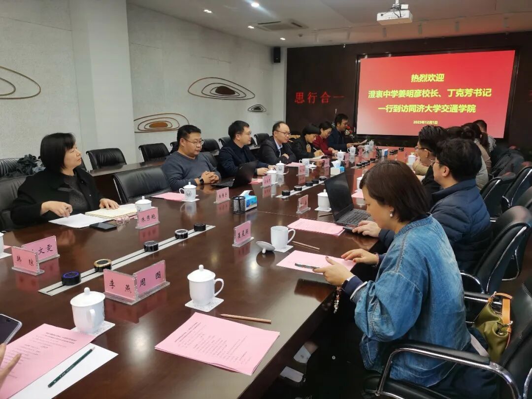 在虹口区全力推进全国首批中小学科学教育实验区建设的关键节点,2025年12月1日下午,同济大学附属澄衷中学校长姜明彦、书记丁克芳率队到访同济大学交通学院,双方围绕“智能交通赋能科技教育,大中贯通共筑创新基石”主题开展深度交流。同济大学交通学院分管教学副院长刘皓冰教授、道路与交通工程教育部重点实验室常务副主任洪玲教授等出席座谈。会议由刘皓冰副院长主持。