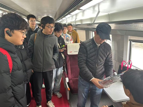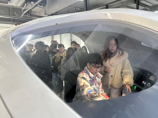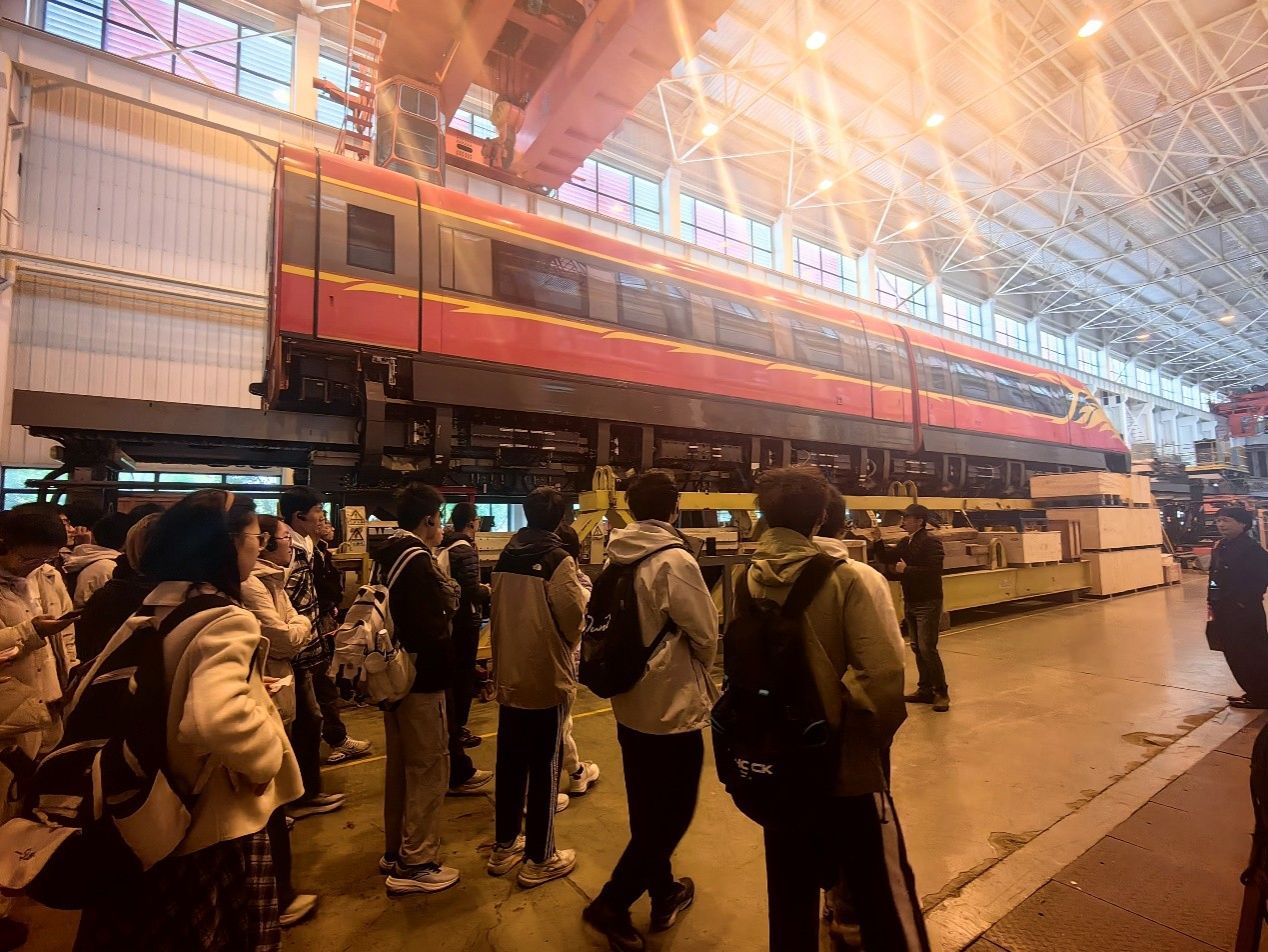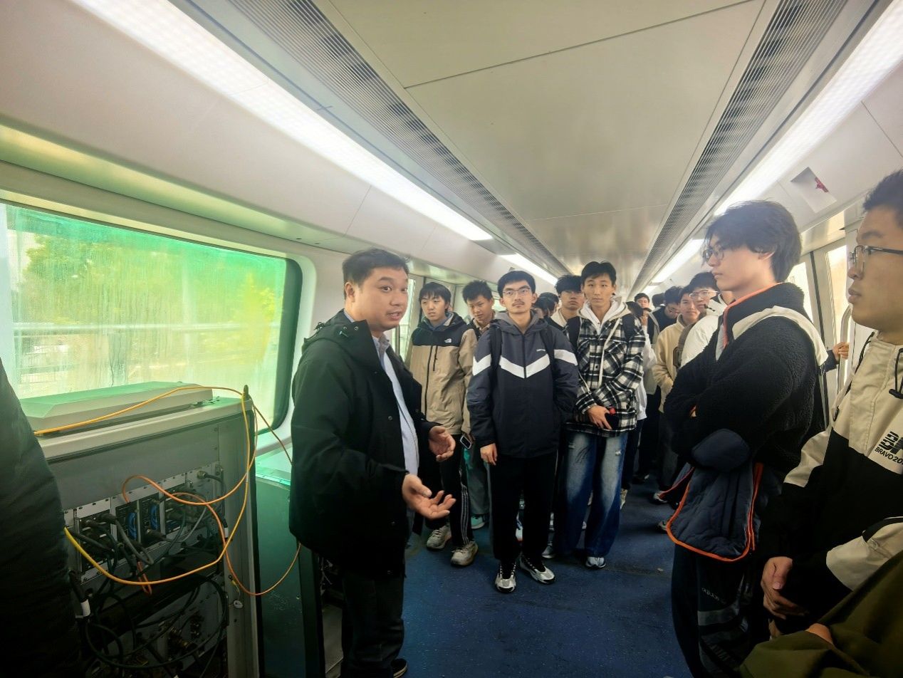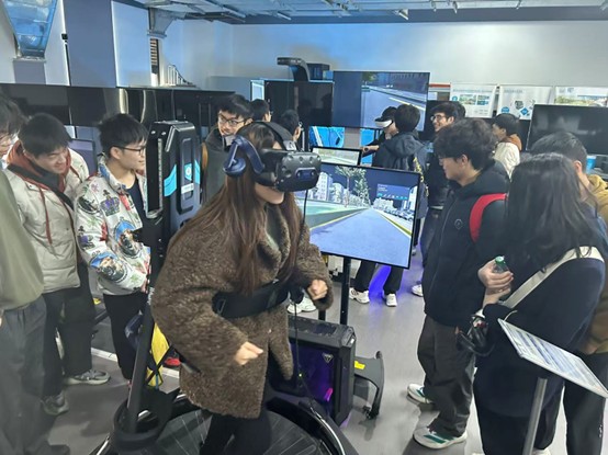 同学们在智慧交通实验室观摩了自动驾驶测试三相映射数字孪生系统,体验虚实融合的交通缩尺实验;在车路协同实验室亲手操作驾驶模拟器,感受人工驾驶与自动驾驶的技术差异;更在轨道交通仿真实验室以第一视角模拟驾驶高铁,领略我国高铁从追赶到领跑的辉煌成就。此外,大家还参观了世界领先的时速600公里高速磁浮试验样车及综合试验线,切身感受自主创新背后的科技力量。
