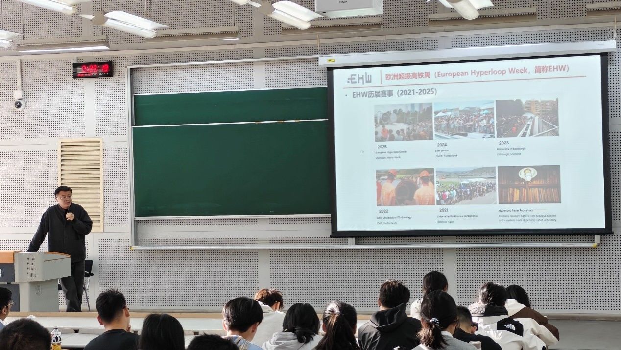 活动第一阶段围绕磁浮技术这一“国之重器”,国家磁浮中心的专家团队系统介绍了中心资源、学生联合创新实验室平台,并详细解读了“欧洲超级高铁周”等国际赛事及校内SITP项目群,为学生参与高水平科研与竞赛铺设路径。第二阶段由学院邢莹莹教授系统解析数学建模、创新创业、专业学科等四类竞赛体系,分享备赛经验,并正式发布以“AI4Transportation”为主题的SITP前沿课题。往届获奖学生代表也到场分享了实战心得与成长故事,为同学们树立了学习标杆。