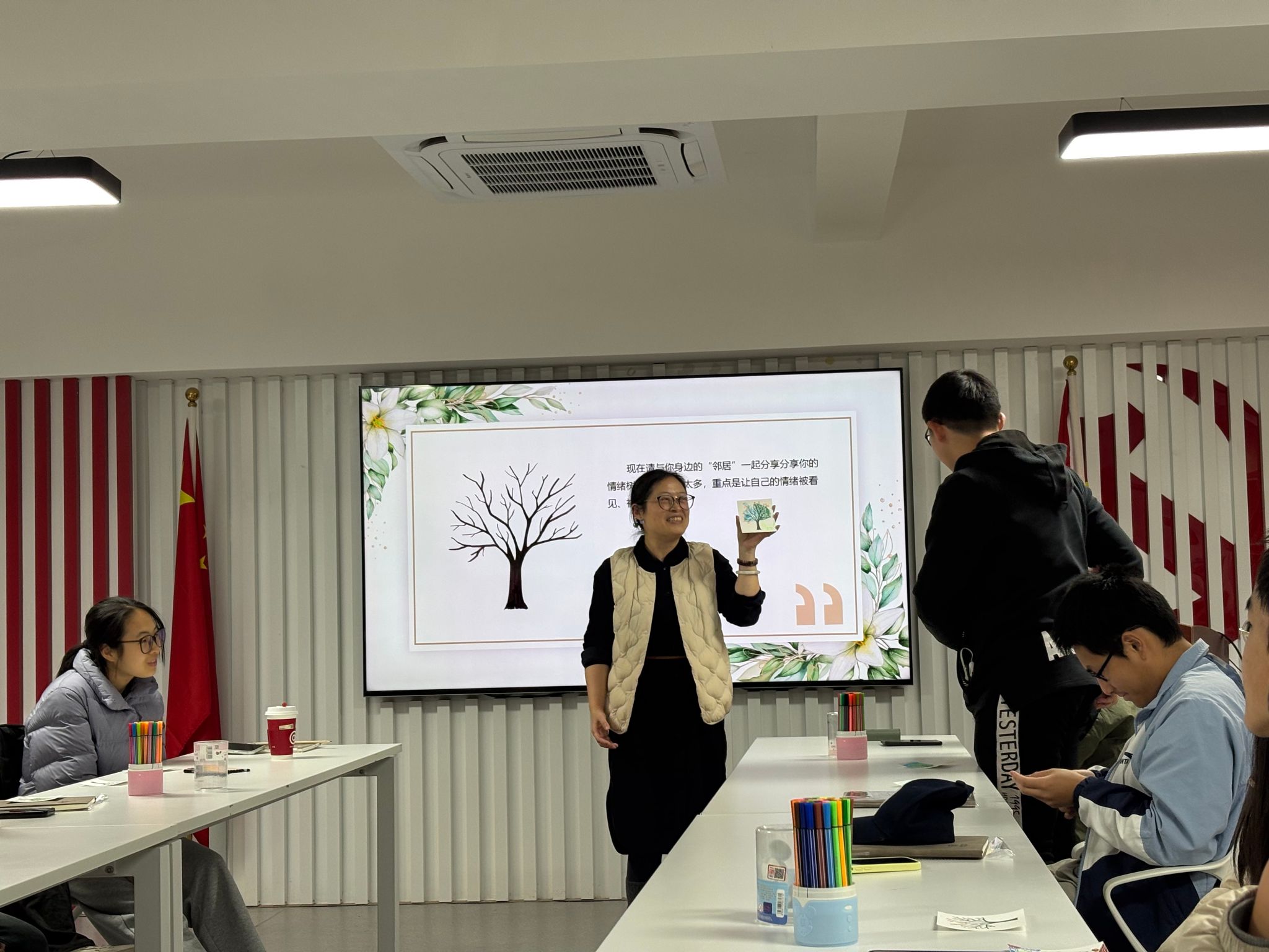 学院依托已建成的院级心理辅导站——“同路人小屋”,于12月5日、12月9日、12月16日举行了多场针对班级心理委员、安全委员的培训与体验。陆昱蓉和胡志超分别为本研班级心理委员系统梳理了常见心理问题的分类与鉴别方法。国家二级心理咨询师张雪华和许青应邀做特色团体辅导活动,带领同学们画“情绪树”、造“情绪雕塑”、体验“情绪涂鸦与创作”,黄渡派出所责任区警长赵志彬深入解读当前十大电信诈骗类型、各类诈骗的特点与防范要点。学院积极构建全方位、多层次的校园安全与心理健康防护体系,为同学安全、健康发展提供更丰富的资源与支持。