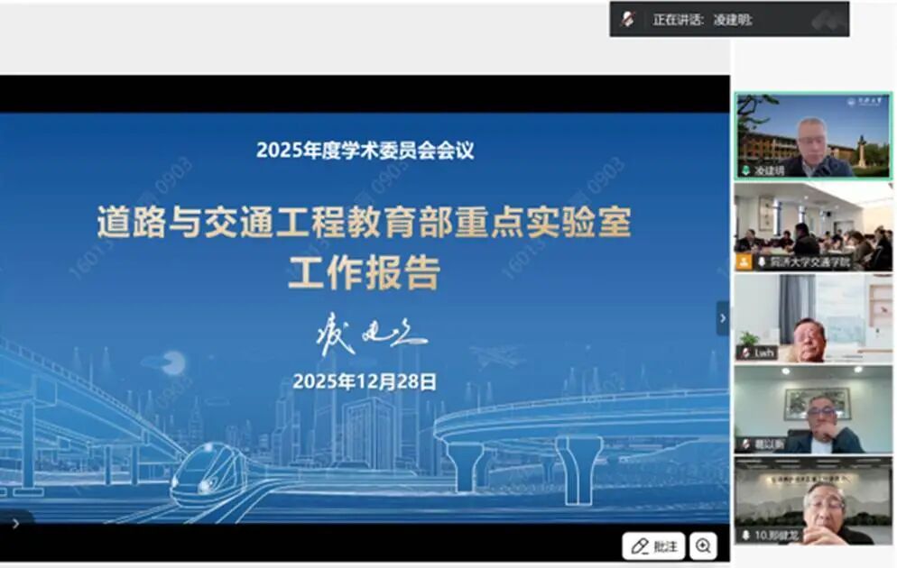 2025年12月28日,道路与交通工程教育部重点实验室以线上线下相结合的形式组织召开了重点实验室2025年度学术委员会会议。会议由学术委员会主任郑健龙院士主持,学术委员会委员梁文灏院士、翟婉明院士、汪双杰院士、唐伯明教授、蔡良才教授、葛以衡教授、张亮教授、凌建明教授、马万经教授等委员出席。同济大学科学技术研究院冯世进院长莅临会议并致辞。交通学院肖军华副院长、左建勇副院长、学院实验室相关人员共同参会。