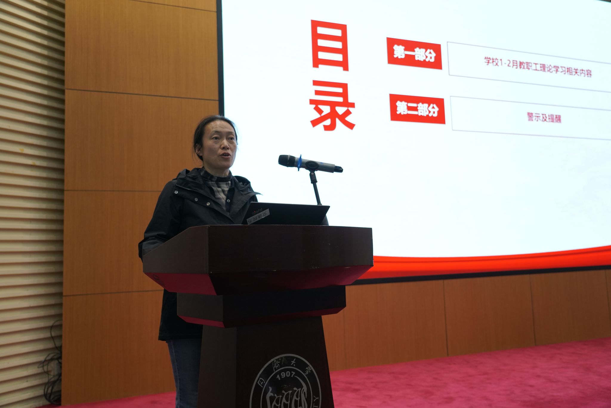 周建梅副书记领学同济大学2026年1-2月教职工政治理论学习,并作师德师风警示教育,重申《新时代高校教师职业行为十项准则》,通报科研经费违规、学术不端等典型案例,解读相关处理细则。同时强调过节纪律、出国(境)报备、采访报批及兼职审批要求。要求教职工牢记身份、规范言行、筑牢职业防线。