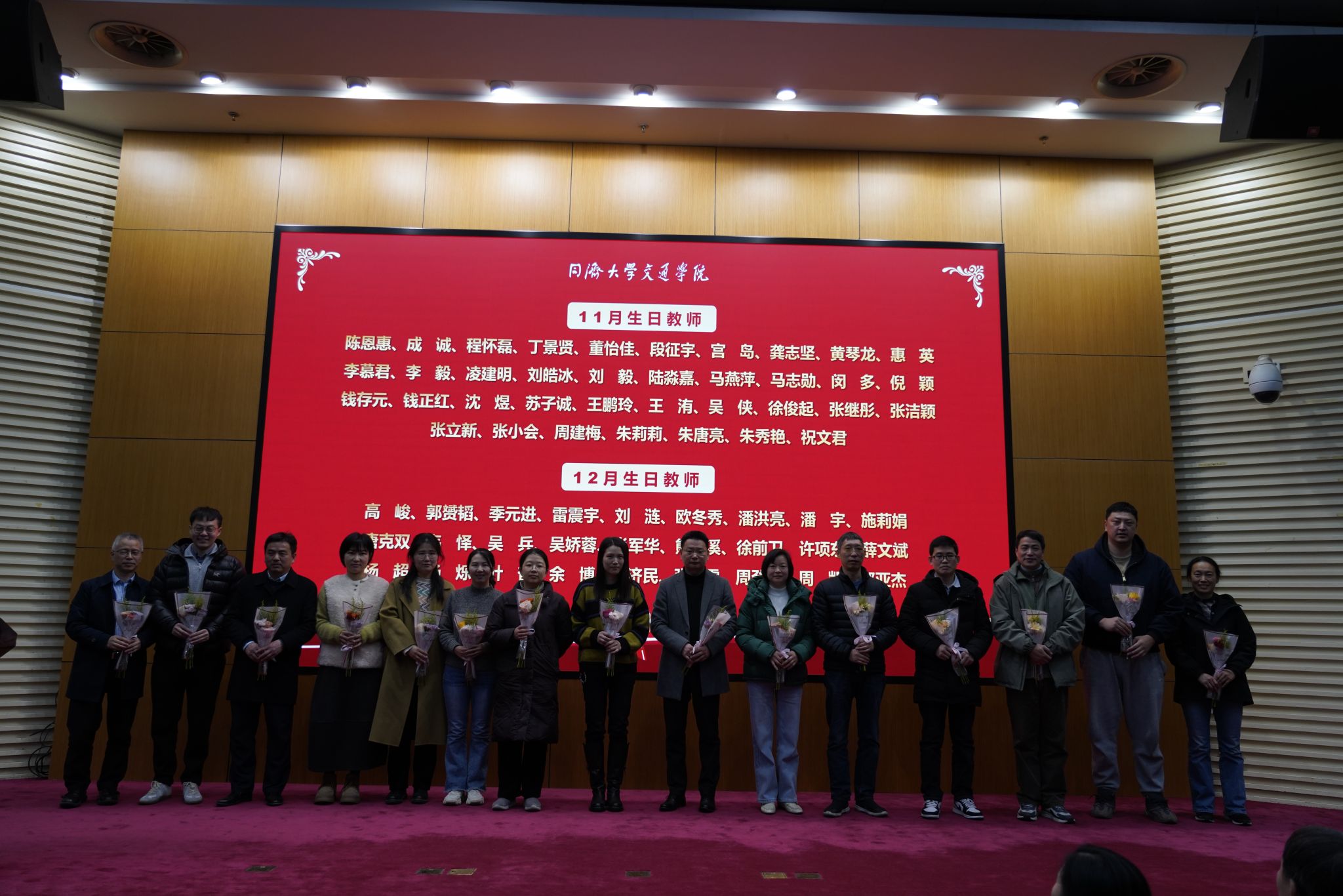延续学院全院大会的传统,为11月、12月、1月、2月份生日的教师送上生日祝福,感谢各位老师为学院发展所做的贡献,现场氛围温馨融洽,老师们感受到浓浓暖意和关爱。