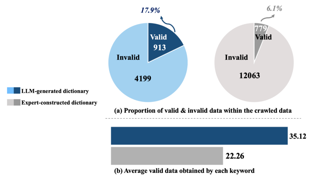 本研究基于微博平台收集2023—2024两年间全国范围的共315538条出行体验数据。所提出的方法所生成的检索关键词覆盖交通领域专家词典82.86%的语义范围,有效剔除过于专业、不符合社交媒体表达习惯的术语,并且平均每个关键词可获取35.12条有效数据,明显高于专家词典的约22.25条。