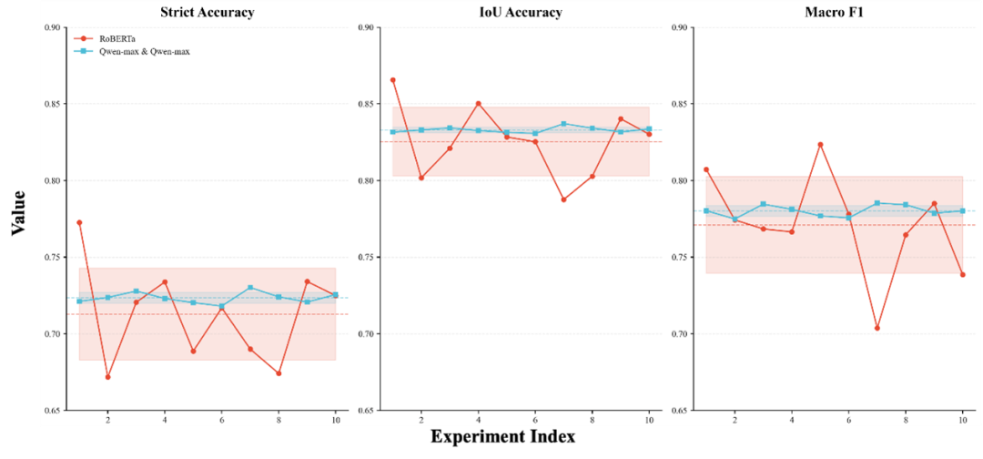在评价结果上,论文以上海和北京为案例开展独立重复验证实验。结果表明,所提出的框架能够稳定输出城市交通多维度评价结果,在零样本学习下的独立重复实验中达到预训练RoBERTa等SOTA模型的水平,并展现出较好的稳健性。此外,所提出的评价范式能进一步识别评价结果背后的关键问题,并形成有针对性的分析与建议。