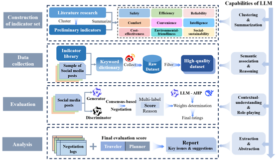 近日,国豪书院2022级交通工程(精英班)专业李敏行同学作为第一作者完成的学术论文《Urban traffic evaluation with social media data: A consensus-based LLM negotiation paradigm》成功被交通运输工程领域顶级期刊Transportation Research Part A: Policy and Practice录用。该研究面向城市交通的出行体验评价,提出了基于大语言模型的出行者主观体验评价框架:以社交媒体数据为基础,构建基于共识的大语言模型协商机制,实现对交通参与者真实体验与出行感受的情感分析与量化评价。本研究在交通学院苏子诚研究员和马万经教授的共同指导下完成。