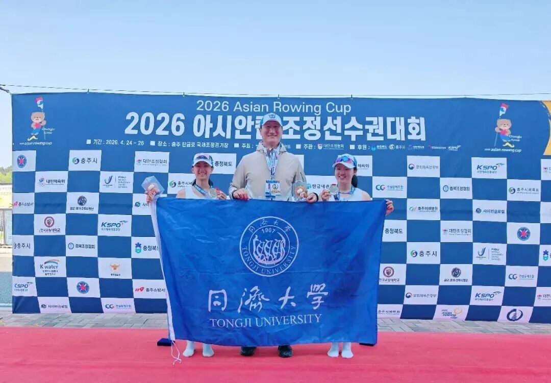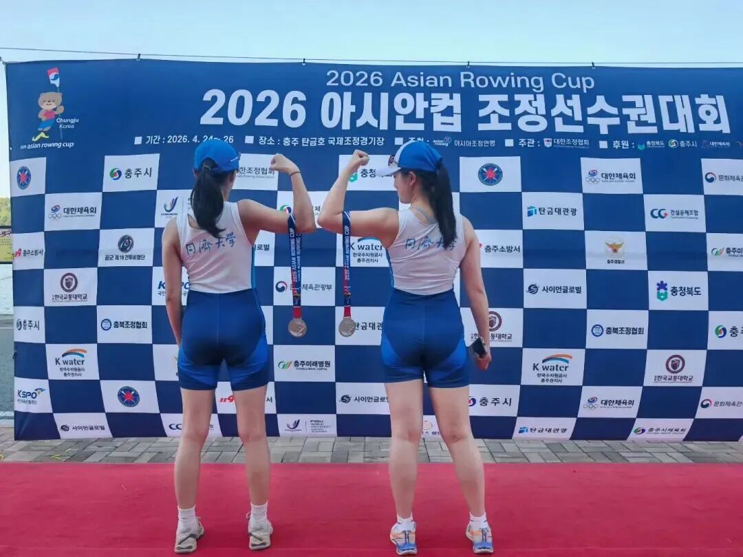 同济大学共有2名学生参赛,分别是交通学院2023级本科生叶童文和2025级硕士研究生胡景彤。叶童文和胡景彤以昂扬的斗志和顽强的拼搏精神,从一众专业赛艇运动员中脱颖而出,她们在女子双人双桨项目中获得银牌,胡景彤在轻量级女子单人双桨项目中获得铜牌。同济学子的优异表现赢得了现场观众的热烈掌声,这也是同济学子在亚洲杯赛场上收获的第一枚赛艇银牌,充分展现了中国青年学子奋勇争先、团结协作的竞技风采,更诠释了同济人坚韧不拔、同舟共济的体育精神。