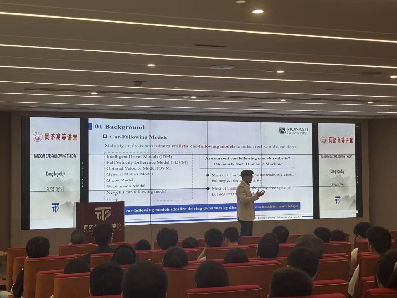 10月15日下午13:30-15:30,第510期同路人学术论坛于交通学院(通达馆)103会议室成功举行。本次讲座的主题为:Random Car-following Theory。讲座邀请了来自蒙纳士大学的Dong Ngoduy副教授为大家带来了精彩的报告。