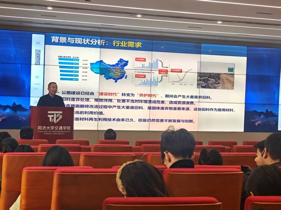 首先张教授介绍了他主要的研究领域为道路工程固废资源低碳再生利用,围绕现存的多元问题与行业挑战,以及行业绿色化转型进程中对沥青路面旧料再生技术革新的迫切需求,结合新的理念与视角以及响应国家战略为技术升级破局的思路等方面向在座的师生全面细致地介绍了研究进展和取得的成果。