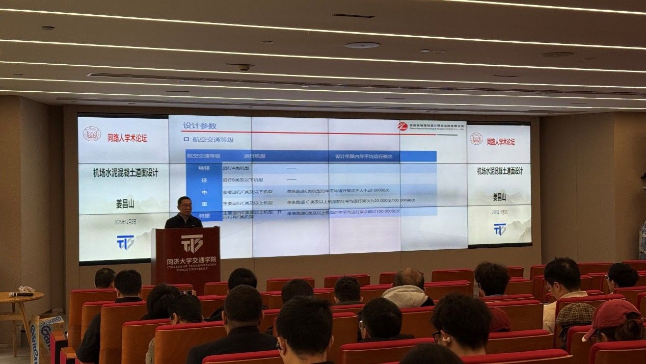 2025年12月5日上午10:00-12:00,第518期同路人学术论坛于交通学院(通达馆)103会议室成功举行。本次讲座的主题为机场水泥混凝土道面设计。讲座邀请了来自民航机场规划设计研究总院有限公司的正高级工程师姜昌山为大家带来了精彩的报告,主要介绍了《民用机场水泥混凝土道面设计规范》(MH/T 5004-2025)的修订内容和依据。