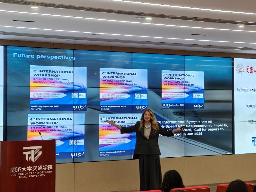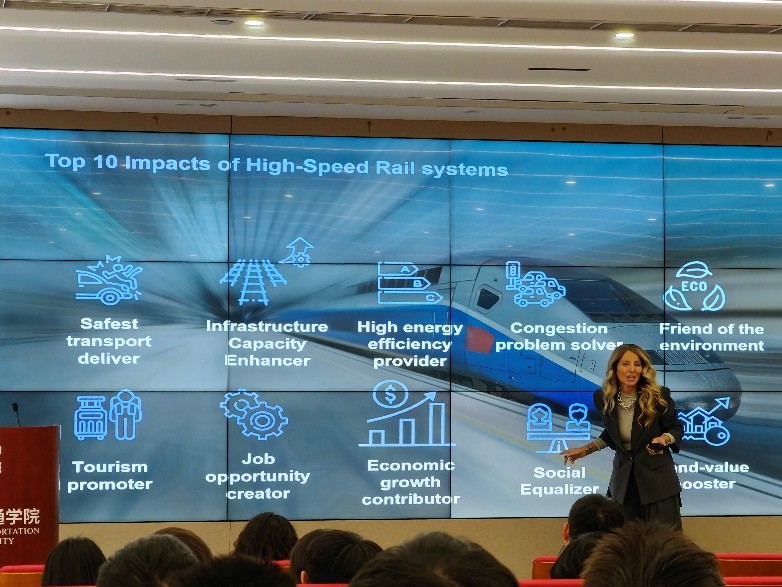 12月10日下午13:00-14:00,第515期同路人学术论坛于交通学院(通达馆)103报告厅成功举行。本次讲座主题为Top 10 Impacts of High-Speed Rail Systems,讲座邀请了来自意大利费德里科二世大学的教授Francesca Pagliara为大家带来了精彩的报告,主要介绍了高速铁路的十大关联影响、新的挑战以及未来展望。