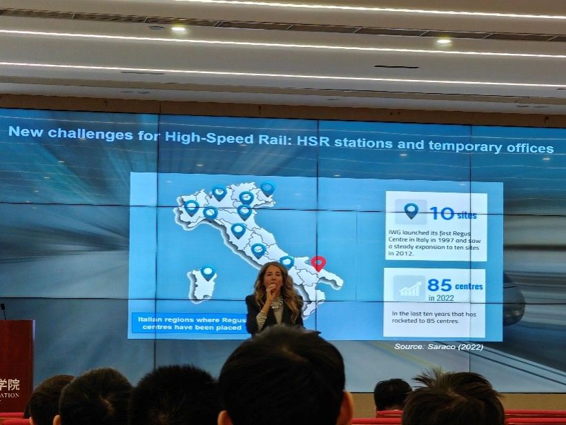 在探讨高铁发展带来的诸多挑战时,Pagliara 教授围绕“高铁站与临时办公场所” 展开分享,以灵活办公空间运营商Regus为例,2012年至2022年灵活办公中心由10个激增至85个。基于这一详实商业布局案例,Pagliara 教授剖析了高铁发展给站点及办公配套带来的新课题,为深入理解高铁系统多元影响拓宽思路,引发在场师生对高铁发展挑战的关注与思考。