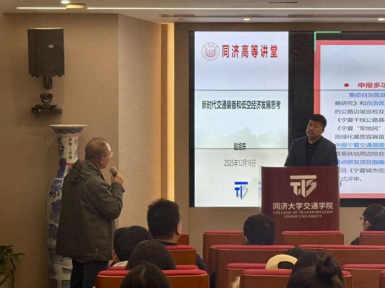 2025年12月16日下午15:30-17:00,院级高等讲堂于交通运输工程学院(通达馆)103会议室成功举行。本次讲座的主题为:新时代交通装备和低空经济发展思考。讲座邀请了来自宁夏公路勘察设计院的高级工程师赵旭东为大家带来精彩的报告。