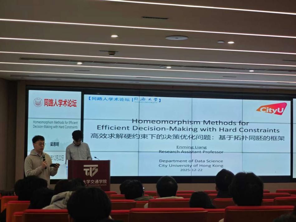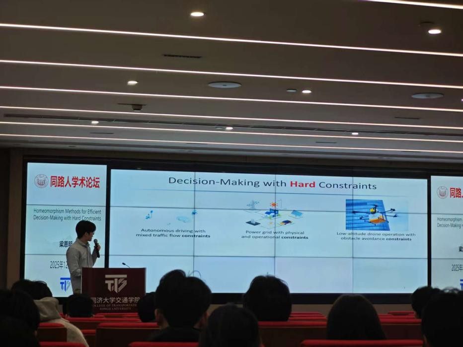 12 月 22 日上午,第 520 期同路人学术论坛之 “Homeomorphism Methods for Efficient Decision-Making with Hard Constraints” 讲座在通达馆 103 顺利举办。本次论坛邀请香港城市大学研究助理教授梁恩明担任主讲,由苏子诚老师发起邀请,吸引了相关领域的老师与同学参与。